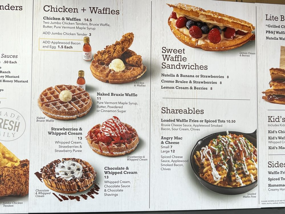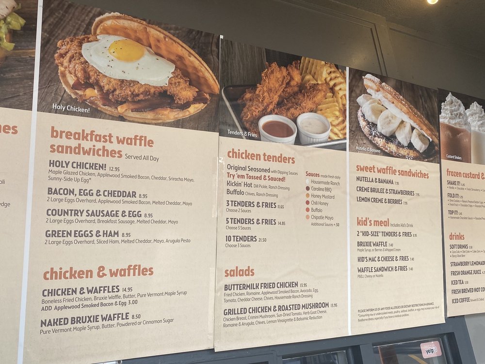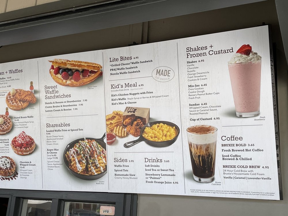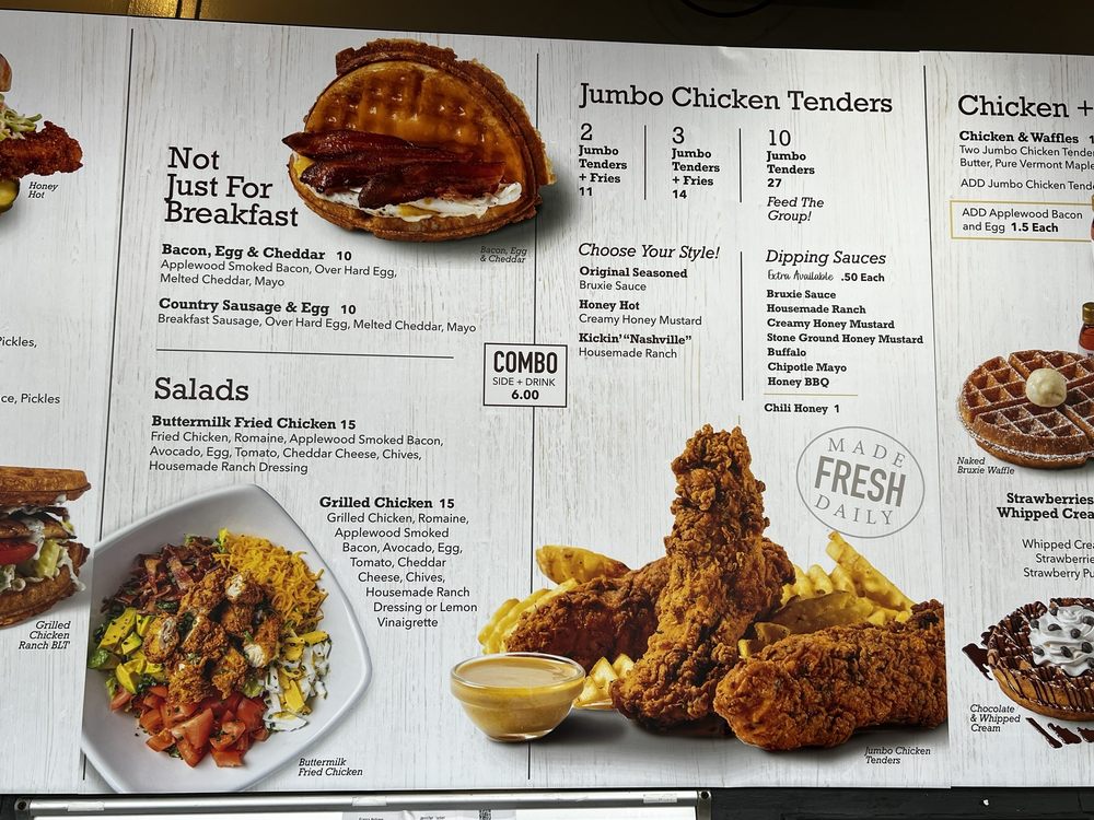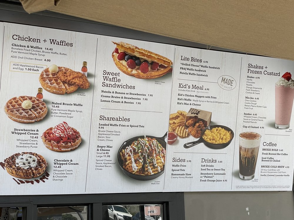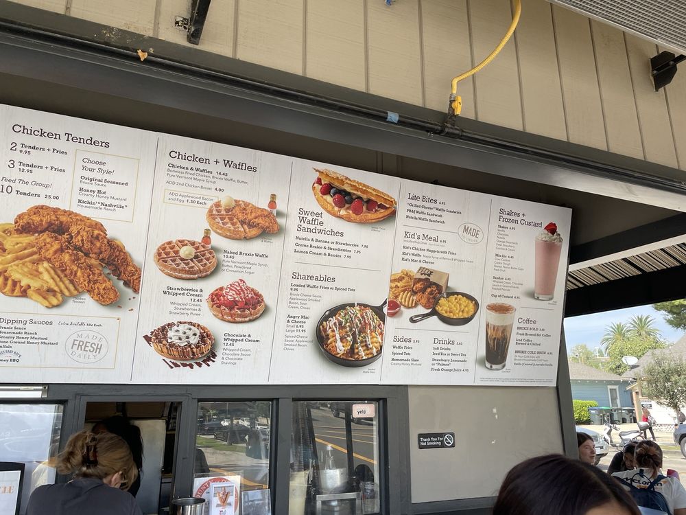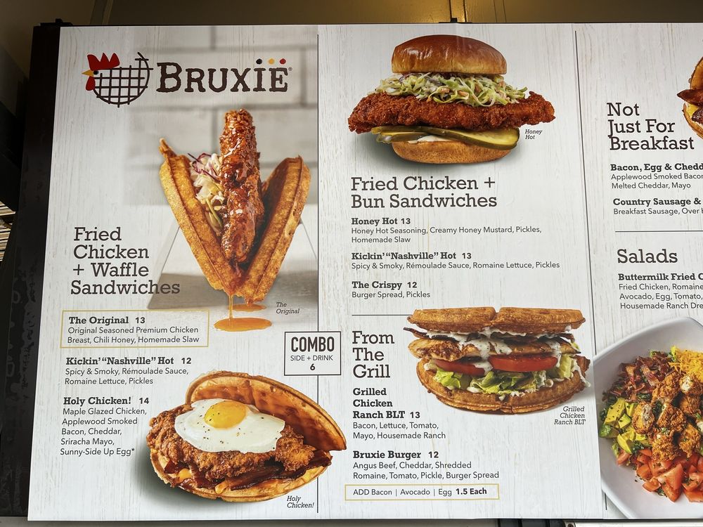 Located in Orange, CA, Bruxie offers a unique menu centered around waffles. With a cozy outdoor setting, it provides a casual dining experience suitable for all. The highlight of Bruxie is their light and airy waffles with a slight crisp, making them a must-try item. The Holy Chicken sandwich, Nashville hot chicken waffle creation with an egg and bacon, is a fan favorite, according to customer reviews. The tenders with cheese sauce are also highly recommended for a flavorful and satisfying meal. While the service may be a bit slow during peak times, the delicious food makes it worth the wait. So, if you're looking for a nostalgic and flavorful dining experience, Bruxie is the place to be.